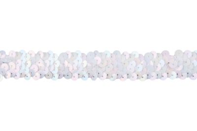 20mm wide elasticated sequin trim. Made from 6mm flat sequins, backed with elasticated thread in a matching colour to the sequin. Fantastic for fashion, dancewear, costumes and fancy headwear.