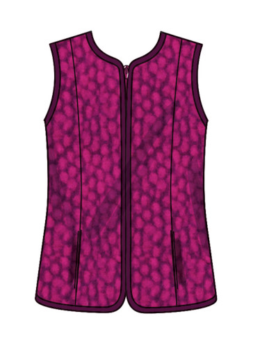 Jacket and vest can be made with a zipper front or button closure. Views A and B have on seam pockets. Views C and D have patch pockets with flaps and adjustable tabs with buttons or snaps.