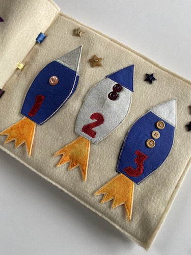 Perhaps you have a little one in your life and would like to make them a felt activity book. If so, these are a perfect workshop for you. The book is designed to keep little fingers busy for hours - matching colours and numbers, tying a shoe lace, filling Noah's Ark with animals, putting Humpty Dumpty back togther again, learning animal names and exploring shapes. There is much scope to personalise the book.