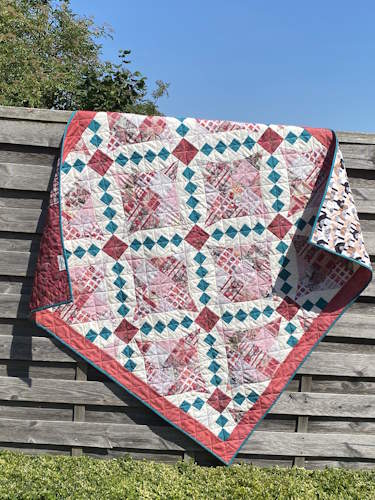 Janet has made her quilt in a red and green colourway but we are sure it will work in most colour combinations or even in scraps.