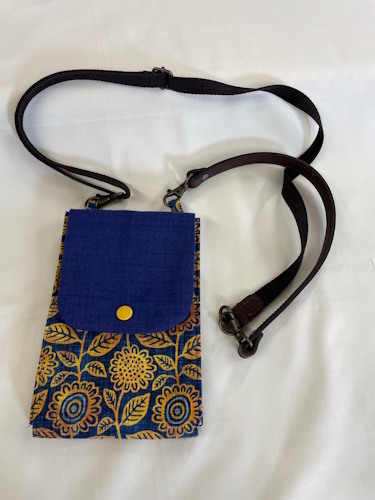 This three pocket phone bag is perfect for when you are out and about. The pockets are roomy enough for a phone, some keys and cards. The added strap can be worn cross body so is great from a security point of view or for dog walking.